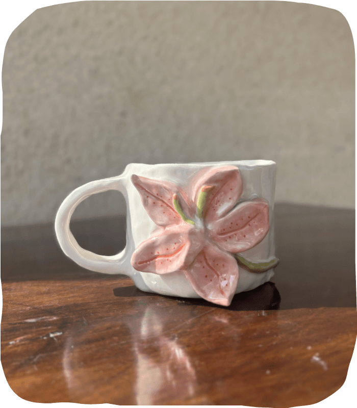 🌸 Ezt a tavaszi kézműves 350 ml kerámia bögrét egy épített liliom díszítés teszi igazán különlegessé.